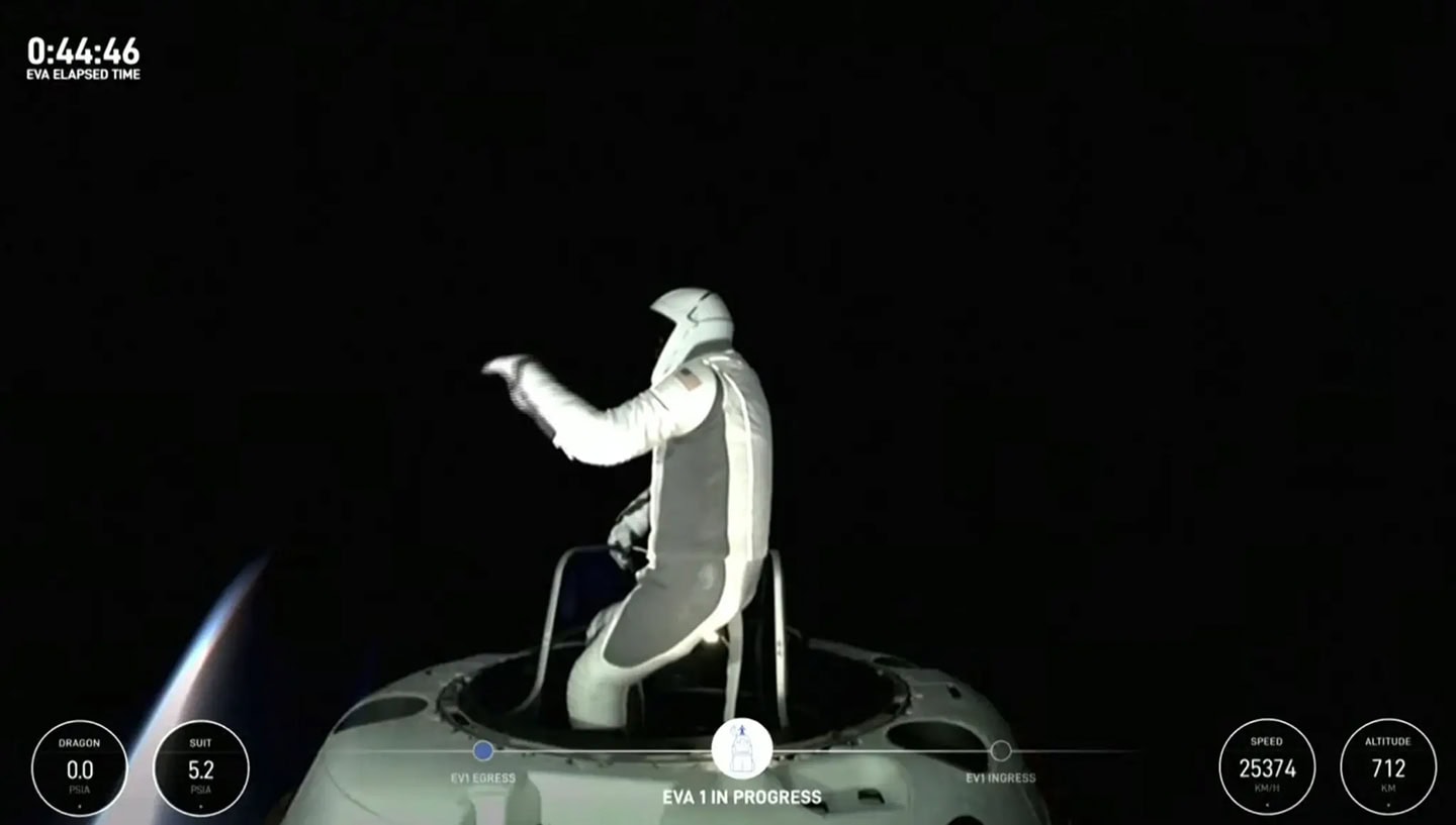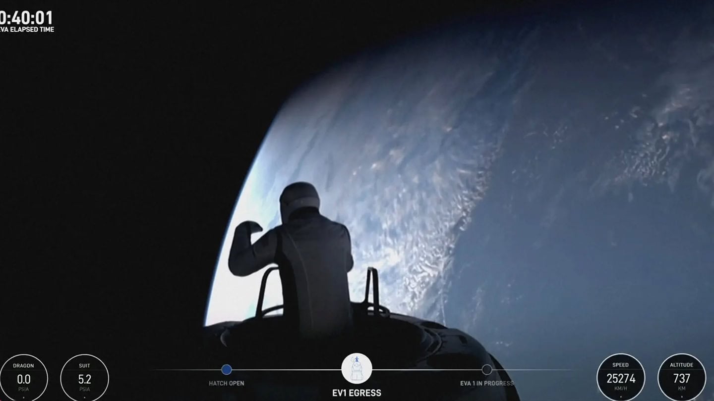 Os quatros membros da tripulação foram expostos ao vácuo do espaço, mas apenas Jared Isaacman, CEO bilionário da tecnologia, e a engenheira da SpaceX, Sarah Gillis, saíram da cápsula da SpaceX. Os companheiros de tripulação Scott “Kidd” Poteet e Anna Menon permaneceram dentro da cápsula.