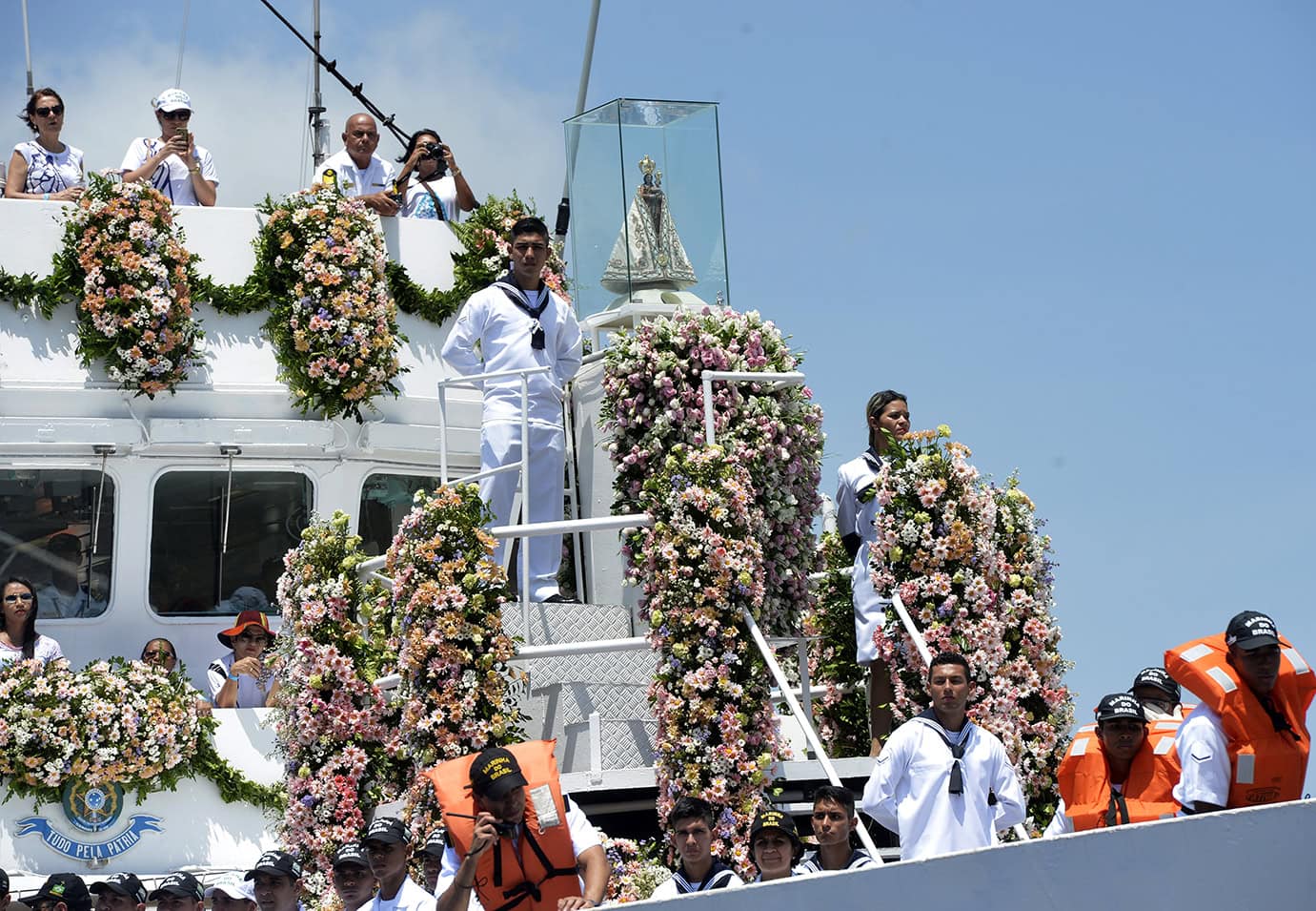 Next, the river pilgrimage or Círio fluvial, where the image travels by boat through Guajará Bay, from Icoaraci to the port pier in the city of Belém, and is accompanied by canoes, Jet Skis, decorated boats and yachts; the motorbike pilgrimage takes place right after the river candle and the image departs from Estação das Docas, heading to Colégio Gentil Bittencourt, accompanied by a large number of decorated motorbikes, which with the sound of the horn announce the saint’s passage; the transfer, a procession that takes place the night before the Círio itself where the image is taken to the Sé Cathedral on a marble tied to a 400 meter rope, carried by people.