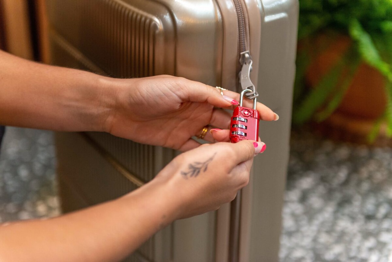 • O cadeado é importante. Há bagagens, no entanto, que podem ser abertas e depois fechadas novamente, mesmo com cadeado. Uma maneira de dificultar essa violação é envolver a mala em plásticos ou com uma capa de segurança.