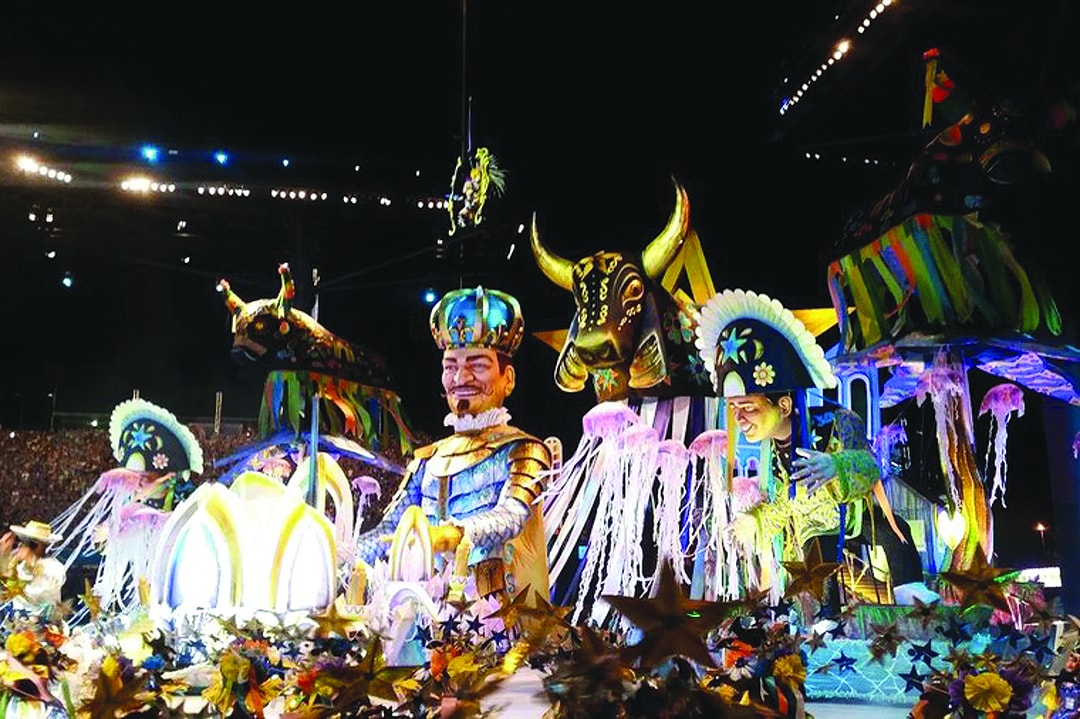 The festival takes place at the Amazonino Mendes Cultural and Sports Center (better known as Bumbódromo), on an island in the middle of the Amazon rainforest called Parintins, which also gives its name to the festival. During three days of celebrations, the parade passes through the Bumbódromo, a large avenue, with floats representing Garantido and Caprichoso. The two groups (called bois, literally “oxen”) face off in an arena through dance and music performances, while boi toadas are used to portray indigenous rituals and riverside customs. Each presentation lasts 2 hours and 30 minutes and is judged by 10 jurors in 21 different categories.