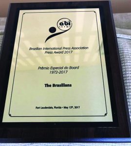 During the 20th edition of the International Brazilian Press Award, held last May in Florida, the newspaper The Brasilians was honored with the special award “Jubilee” for its 45 years of uninterrupted publication, which will be celebrated this year.