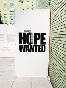 Curada pelo poeta e jornalista Kevin Powell e pela fotógrafa Kay Hickman, Hope Wanted: New York City Under Quarantine apresenta mais de 50 fotografias tiradas por Hickman, juntamente com 14 entrevistas em áudio com os sujeitos das fotografias, conduzidas por Powell durante a intensa odisseia de dois dias da equipe pela cidade em 8–9 de abril de 2020; o áudio estará acessível aos visitantes por meio de seus celulares. As fotografias empáticas de Hickman de pessoas e seus bairros nos cinco distritos e as entrevistas investigativas de Powell com nova-iorquinos impactados pela crise capturam tanto a tragédia quanto uma resiliência notável em um momento específico da pandemia. O texto e o áudio da exposição serão oferecidos em inglês e espanhol.