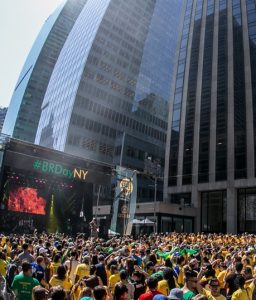 trabalho nos Estados Unidos será completamente verde-amarelo. Parte da 6ª Avenida e da Rua 46 (Little Brazil) serão fechadas para a realização da maior festa brasileira fora do Brasil, o BR Day NY. Esta é uma festa que celebra a Independência do Brasil e a cultura brasileira, principalmente através da música. Durante mais de três décadas de comemorações, o BR Day NY traz bandas e cantores em evidência no Brasil para tocar e cantar no coração de Nova York para os brasileiros saudosos de casa e estrangeiros admiradores do País.