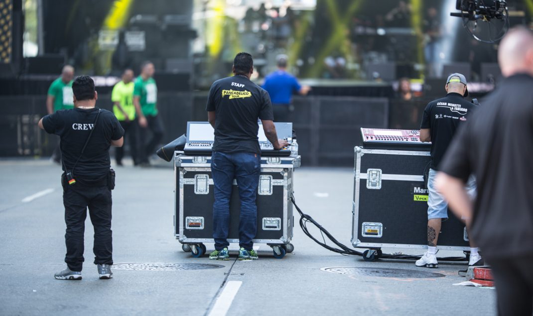 Embora tudo seja muito bem planejado, é no dia do evento que tudo acontece na prática. Primeiramente, é necessário fechar a 6ª Avenida. Claro, que é a própria cidade de Nova York que faz isso precisamente às 23:59 do sábado. Aí inicia-se uma corrida contra o relógio para a montagem do palco. Quem já viu o BR Day de pertinho sabe que o palco é enorme, ou seja, colocar de pé uma estrutura como aquela é um trabalho somente para mestres.
