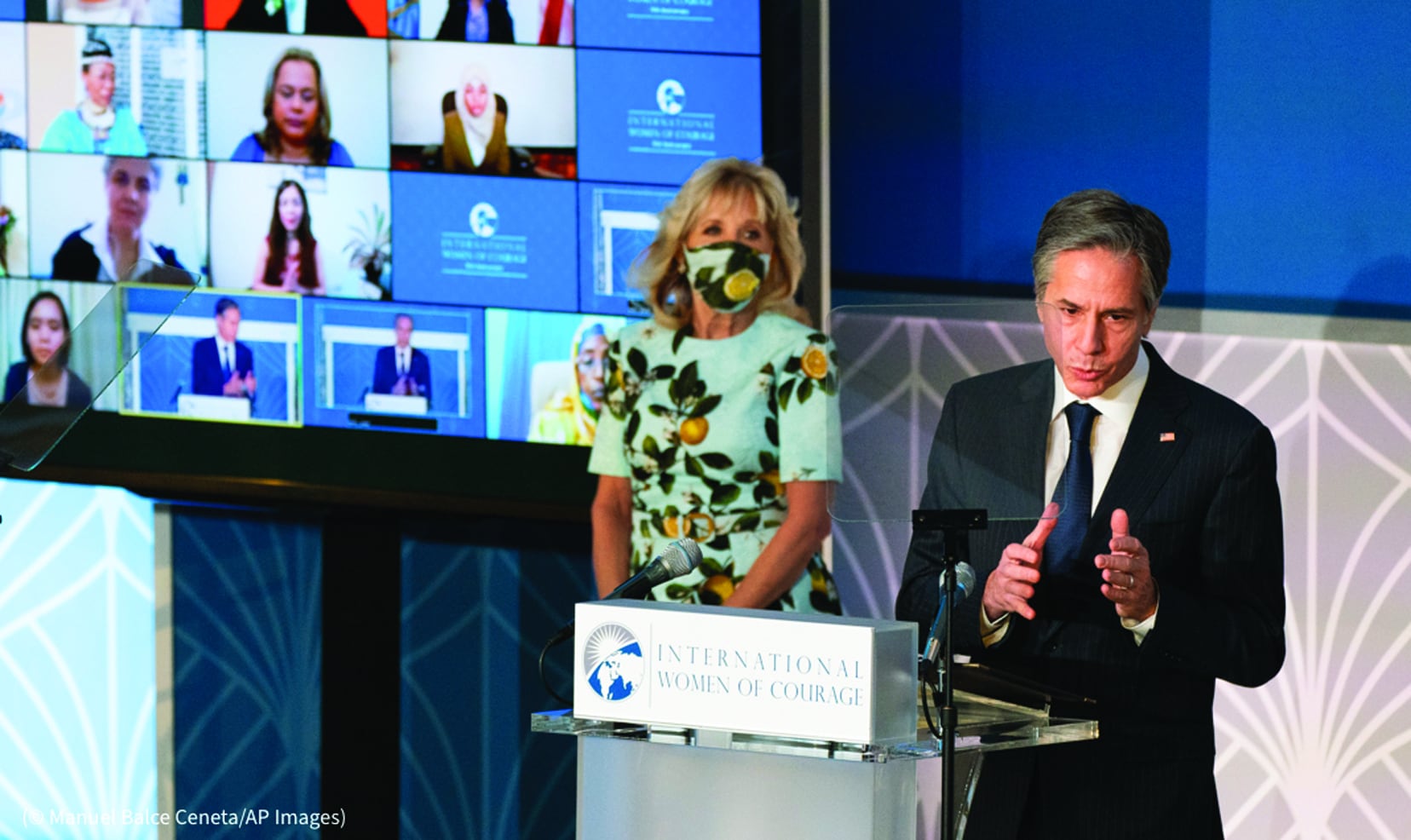Blinken and first lady Jill Biden hosted the 15th annual International Women of Courage Awards in a virtual ceremony on March 8. The ceremony honored a group of brave women, nominated by U.S. embassies from around the world, who have made a difference in their communities, countries and the world.